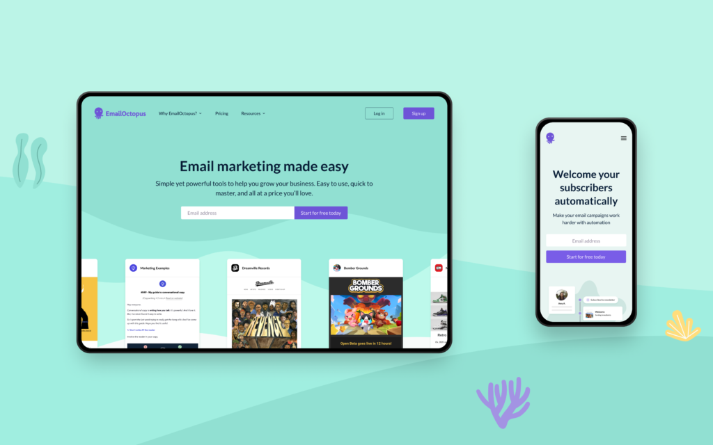 We used conversion-centred design techniques when designing the landing pages for EmailOctopus.